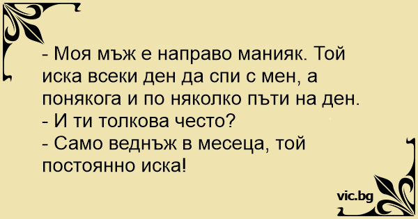 - Моя мъж е направо манияк. Той иска всеки ден да спи с мен, а понякога и по няколко пъти на ден.