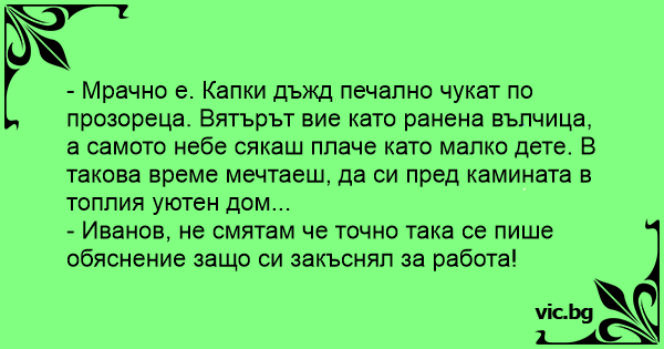 - Иванов, не смятам че точно така се пише обяснение защо си закъснял за работа!