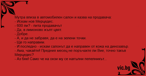 - Ама, чакайте! Предния месец не поръчахте ли Вие, точно такъв Мерцедес?
