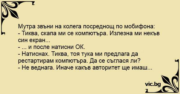 • Вицове от Facebook от нашата страница https://www.facebook.com/www.vic.bg