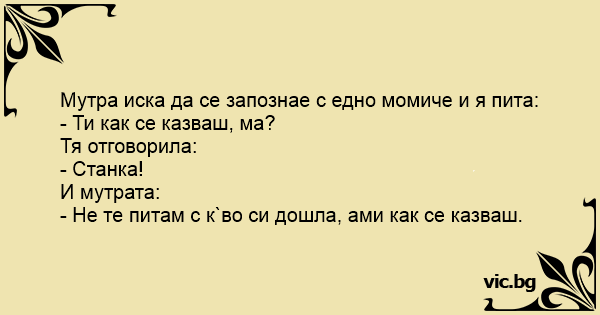 • Вицове от Facebook от нашата страница https://www.facebook.com/www.vic.bg