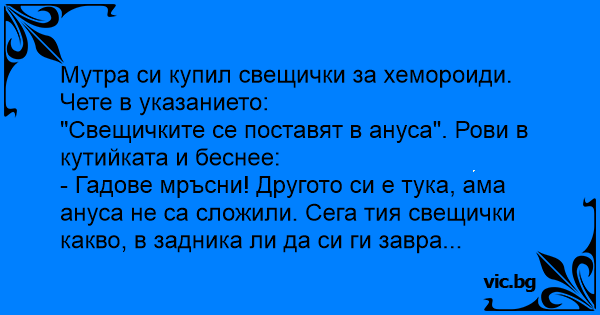 Мутра си купил свещички за хемороиди.
