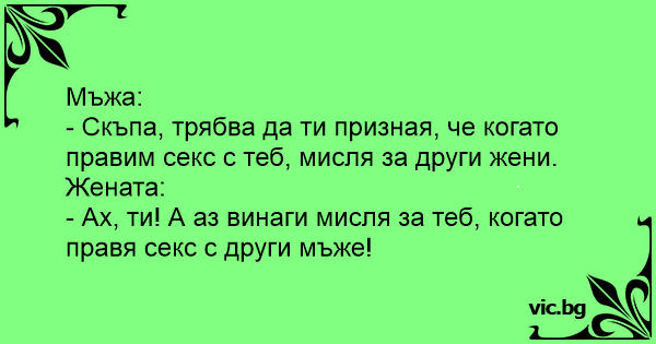 - Ах, ти! А аз винаги мисля за теб, когато правя cekc с други мъже!