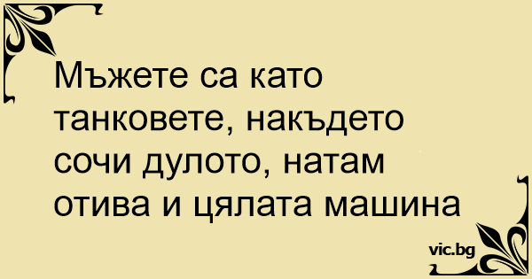 Мъжете са като танковете, накъдето сочи дулото, натам отива и цялата машина
