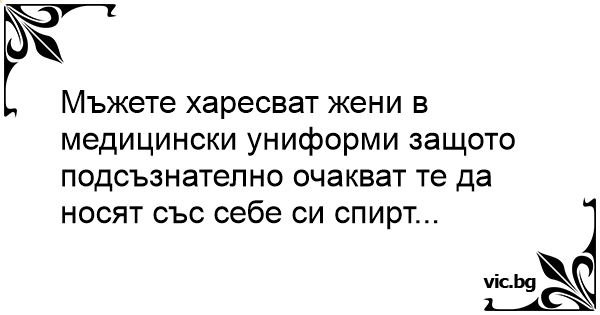 Мъжете харесват жени в медицински униформи защото подсъзнателно очакват те да носят със себе си спирт...
