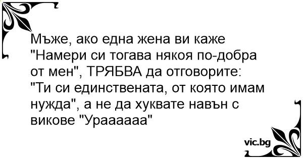 Мъже, ако една жена ви каже "Намери си тогава някоя по-добра от мен", ТРЯБВА да отговорите: