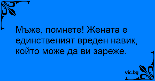 Мъже, помнете! Жената е единственият вреден навик, който може да ви зареже.
