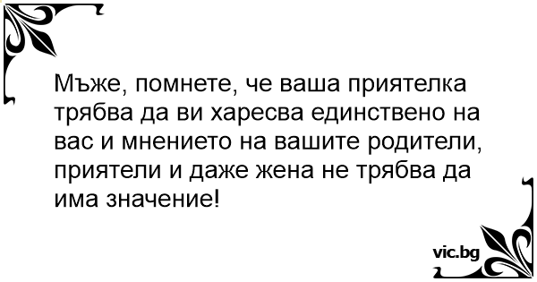 Мъже, помнете, че ваша приятелка трябва да ви харесва единствено на вас и мнението на вашите родители, приятели и даже жена не трябва да има значение!