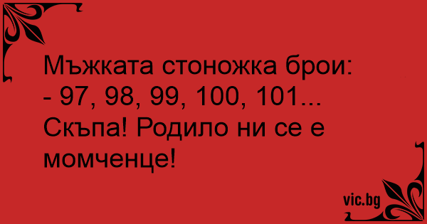 - 97, 98, 99, 100, 101... Скъпа! Родило ни се е момченце!