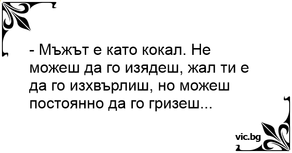 - Мъжът е като кокал. Не можеш да го изядеш, жал ти е да го изхвърлиш, но можеш постоянно да го гризеш...