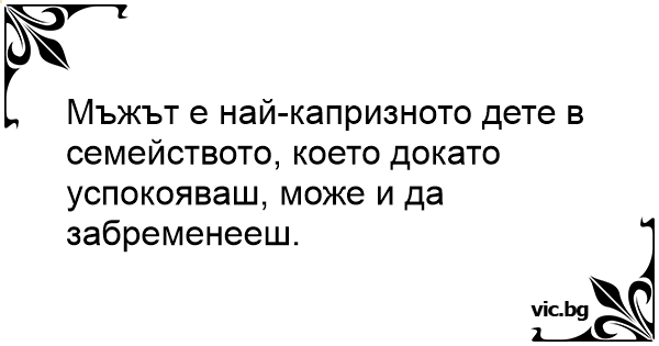 Мъжът е най-капризното дете в семейството, което докато успокояваш, може и да забременееш.