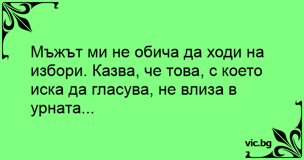 Мъжът ми не обича да ходи на избори. Казва, че това, с което иска да гласува, не влиза в урната...