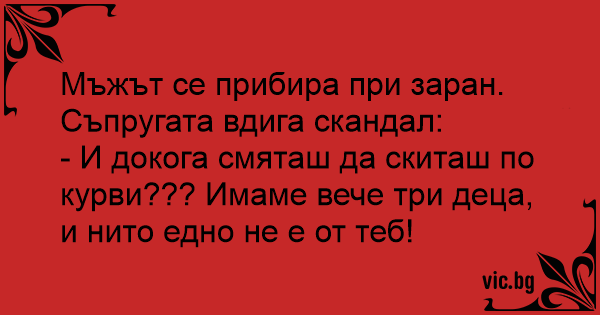 Мъжът се прибира при заран. Съпругата вдига скандал: