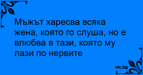 Мъжът харесва всяка жена, която го слуша, но е влюбва в тази, която му лази по нервите