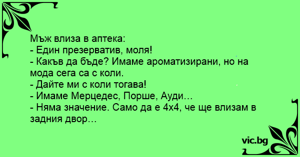 • Вицове от Facebook от нашата страница https://www.facebook.com/www.vic.bg