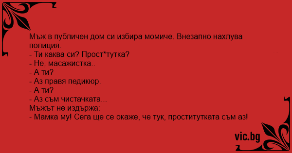 • Вицове от Facebook от нашата страница https://www.facebook.com/www.vic.bg