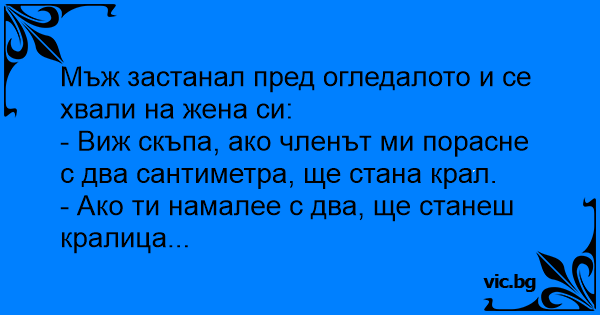 - Виж скъпа, ако члeнъt ми порасне с два сантиметра, ще стана крал.