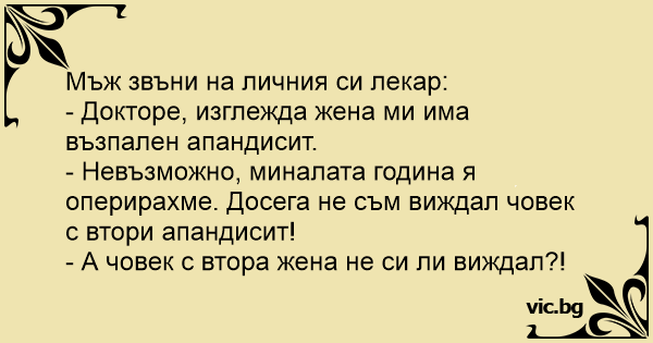 - Докторе, изглежда жена ми има възпален апандисит.