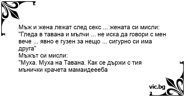 Мъж и жена лежат след cekc ... жената си мисли:
