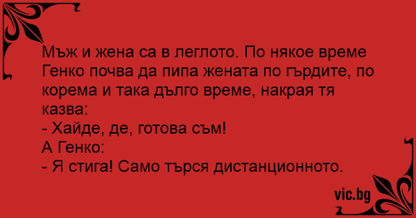• Вицове от Facebook от нашата страница https://www.facebook.com/www.vic.bg