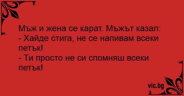 Мъж и жена се карат. Мъжът казал: