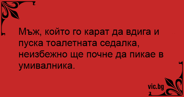 Мъж, който го карат да вдига и пуска тоалетната седалка, неизбежно ще почне да пикае в умивалника.
