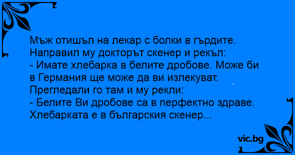 Мъж отишъл на лекар с болки в гърдите. Направил му докторът скенер и рекъл: