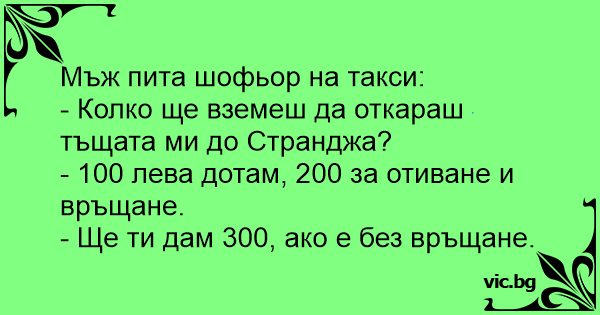 - Колко ще вземеш да откараш тъщата ми до Странджа?