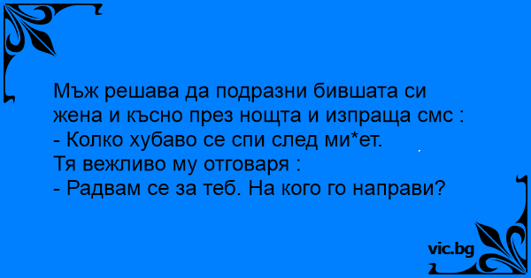Мъж решава да подразни бившата си жена и късно през нощта и изпраща смс :