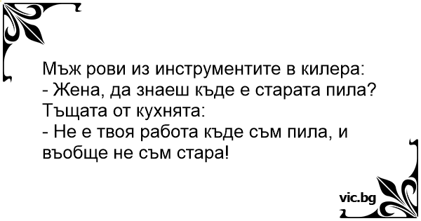 - Жена, да знаеш къде е старата пила?