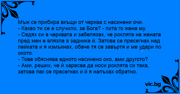 - Какво ти се е случило, за Бога? - пита го жена му.