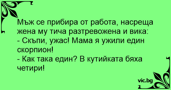 - Скъпи, ужас! Мама я ужили един скорпион!