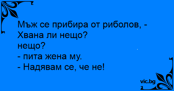 Мъж се прибира от риболов, - Хвана ли нещо?