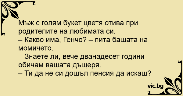 • Вицове от Facebook от нашата страница https://www.facebook.com/www.vic.bg