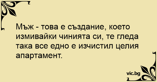 Мъж - това е създание, което измивайки чинията си, те гледа така все едно е изчистил целия апартамент.