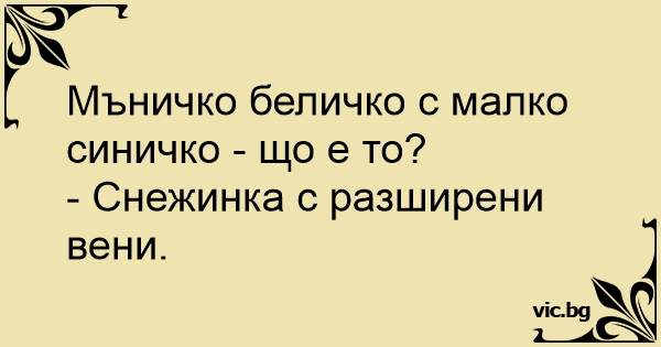 • Вицове от Facebook от нашата страница https://www.facebook.com/www.vic.bg
