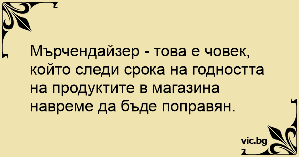Мърчендайзер - това е човек, който следи срока на годността на продуктите в магазина навреме да бъде поправян.