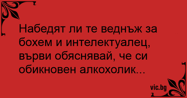 Набедят ли те веднъж за бохем и интелектуалец, върви обяснявай, че си обикновен алкохолик...