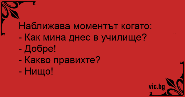 - Как мина днес в училище?