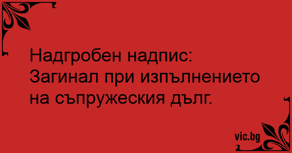 Надгробен надпис: Загинал при изпълнението на съпружеския дълг.