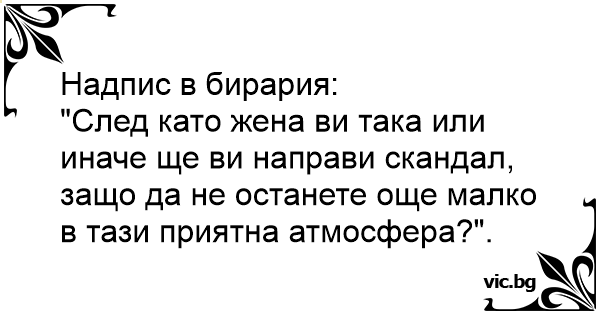 "След като жена ви така или иначе ще ви направи скандал, защо да не останете още малко в тази приятна атмосфера?".
