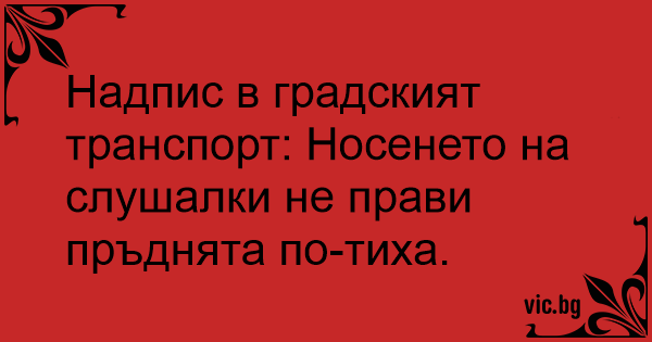 Надпис в градският транспорт: Носенето на слушалки не прави пръднята по-тиха.
