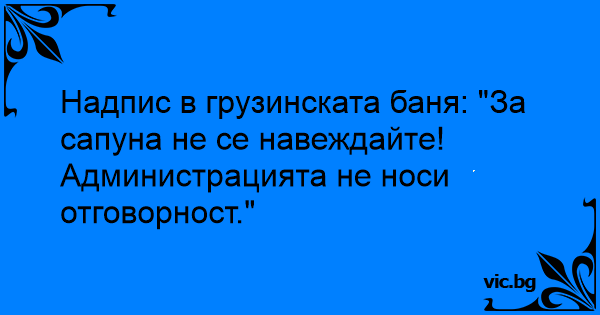 Надпис в грузинската баня: "За сапуна не се навеждайте! Администрацията не носи отговорност."