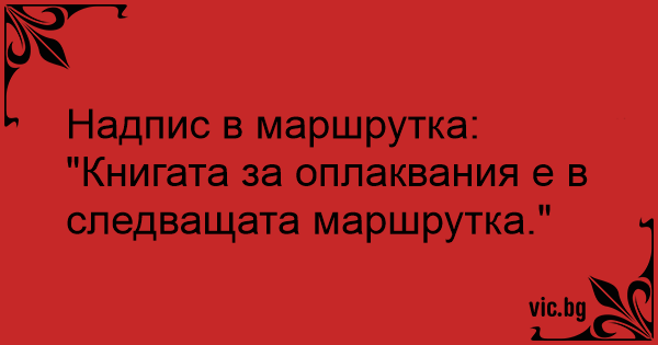 Надпис в маршрутка: "Книгата за оплаквания е в следващата маршрутка."