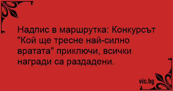 Надпис в маршрутка: Конкурсът "Кой ще тресне най-силно вратата" приключи, всички награди са раздадени.
