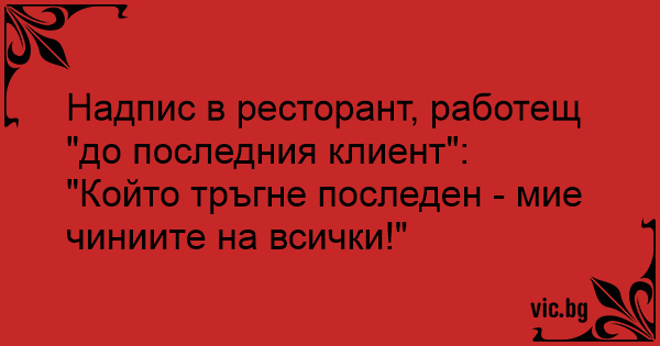 Надпис в ресторант, работещ "до последния клиент":