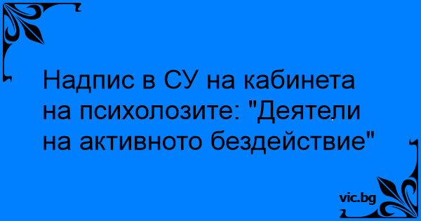 Надпис в СУ на кабинета на психолозите: "Деятели на активното бездействие"