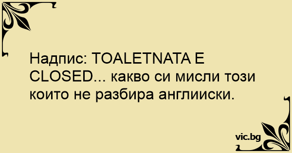 Надпис: TOALETNATA E CLOSED... какво си мисли този които не разбира англииски.