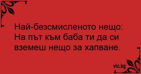 Най-безсмисленото нещо: На път към баба ти да си вземеш нещо за хапване.