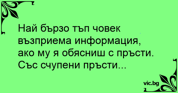 Най бързо тъп човек възприема информация, ако му я обясниш с пръсти.